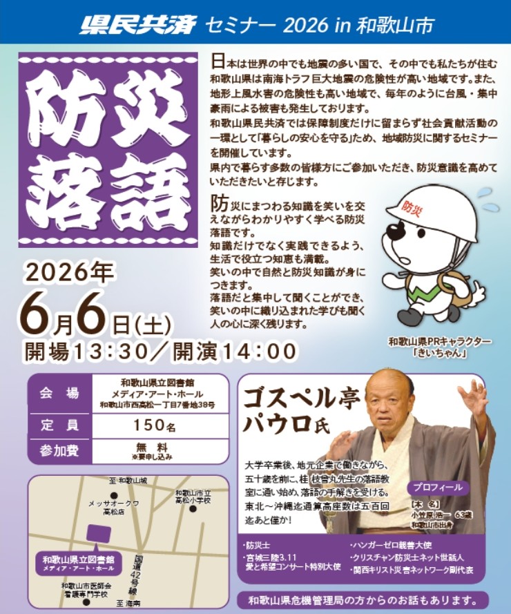 ※お申し込みいただいた個人情報については和歌山県民共済にて厳重に管理し、当セミナー開催以外の目的には使用いたしません。
